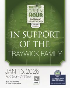 Join us the the first Green Hour of 2026 in support of the Traywick Family. Bleu Coat is donating a portion of ALL sales to the family.