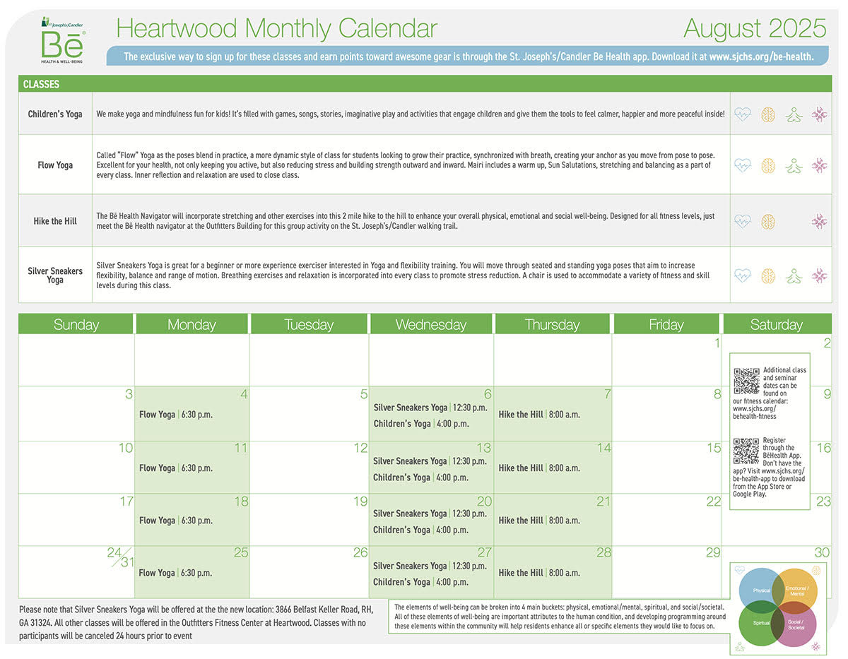 Trail Walk: You’ll meet the Bē Health navigator for a group activity on the St. Joseph’s/Candler Walking Trail. The Bē Health Navigator will incorporate stretching and other exercises into the walk to enhance your overall physical, emotional and social well-being.